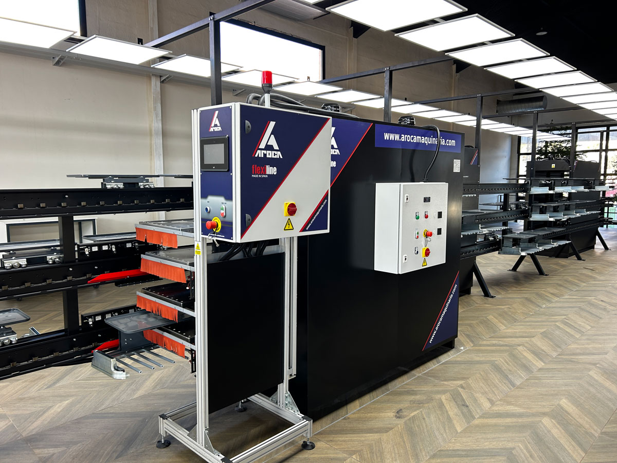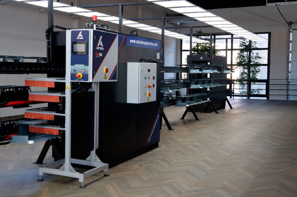 Diseño, fabricación y comercialización de maquinaria industrial para el sector del calzado, especialmente sistemas de vías transportadoras flexibles para líneas de montaje.