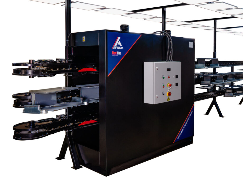 Flexiline es una línea de montado de calzado diseñada para ofrecer máxima capacidad productiva, flexibilidad operativa y eficiencia energética.